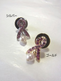 ピンクリボン ピンバッジ(リボン&パール)
