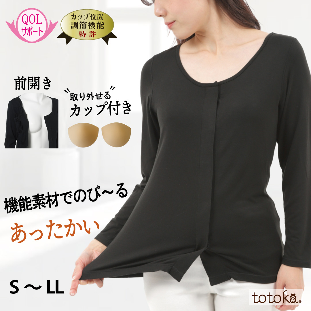取り外せるカップ付き 前開き肌着(長袖)